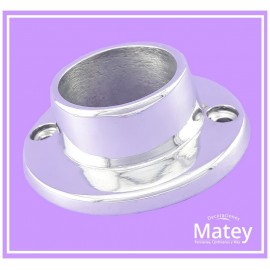 BRIDA REDONDA ALUMINIO PARA TUBO DE 38 MM, HECHO EN ALUMINIO PULIDO, CON MEDIDA DE ALTO 26 MM Y BASE DE 78 MM DE DIAMETRO.