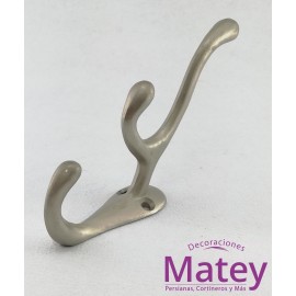 PERCHERO DE ZAMAK TRIPLE EN COLOR SATIN, HECHO EN INYECCION DE ZAMAK CON PINTURA SATINADA AL HORNO, CON MEDIDA DE ALTO 135 MM, ANCHO 90 MM Y BASE 26 X 67 MM.