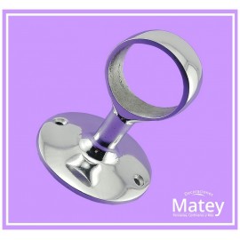 SOPORTE CENTRAL PARA TUBO DE 50 MM, HECHO EN ALUMINIO PULIDO, CON MEDIDA DE ALTO 130 MM, POSTE 20 MM Y BASE 93 MM DE DIAMETRO.