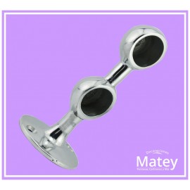 SOPORTE DOBLE DE BOLA LATERAL PARA TUBO DE 25 MM, HECHO EN ALUMINIO, CON MEDIDA DE ALTO 130 MM Y BASE 62 MM DE DIAMETRO.
