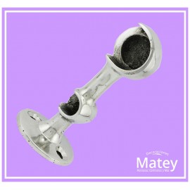 SOPORTE DOBLE DE CAZUELA LADO DERECHO, HECHO EN ALUMINIO PULIDO, CON MEDIDA DE ALTO 100 MM, ANCHO 24 MM Y BASE 43 MM DE DIAMETRO.