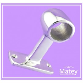 SOPORTE PASAMANO LARGO PARA TUBO DE 32 MM, HECHO EN ALUMINIO PULIDO, CON MEDIDA DE ALTO 115 MM, ANCHO 44 MM Y BASE 84 X 40 MM. MEDIDAS APROXIMADAS.