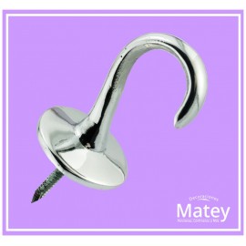 SOPORTE GANCHO GARFIO PARA TUBO DE 25 MM CON TORNILLO, HECHO EN ALUMINIO PULIDO, CON MEDIDA DE ALTO 65 MM, GROSOR 10 MM Y BASE 45 MM DE DIAMETRO. MEDIDAS APROXIMADAS.