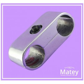 SOPORTE UNION PARALELO PARA TUBO DE 25 MM, HECHO EN ALUMINIO PULIDO, ALTO 30 MM, LARGO 82 MM Y FONDO 30 MM.